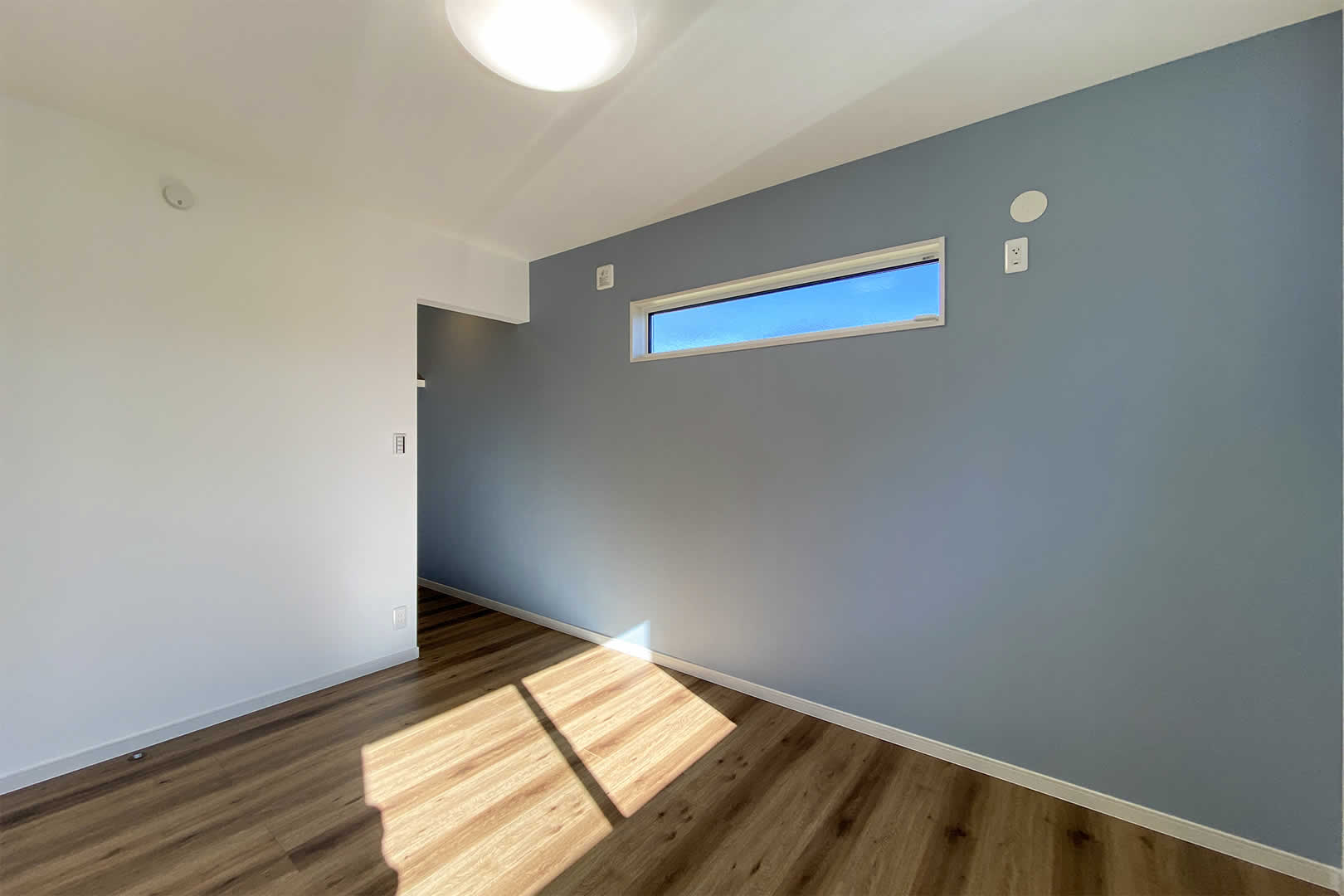 LDKから離れたところにベッドルームを作りました。東側に横長の窓を取り入れることで、お隣の方との視線も気になりません。明るすぎず暗くすぎないお部屋になるので昼夜問わず、ゆっくり眠れます。