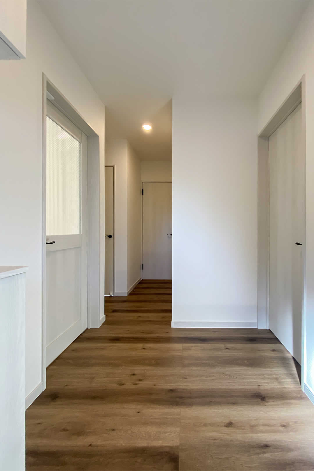 玄関ホールから水まわりに直接行けます。ホールも畳1枚半の広さがあるので、買い物からの荷物を置いても、ゆっくりと靴を脱ぐスペースが取れます。
