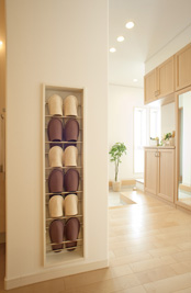 スリッパラックを玄関に作り付けてしまえば、場所を取ることもなくスリッパもスッキリ収納!!