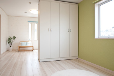 小さい頃は2部屋つなげて広く使い、大きくなってきたら可動式のクローゼットでしきることでスッキリ!