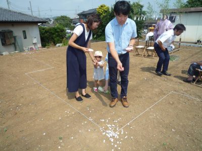 家族みんなでの地鎮祭ハートたち (複数ハート)