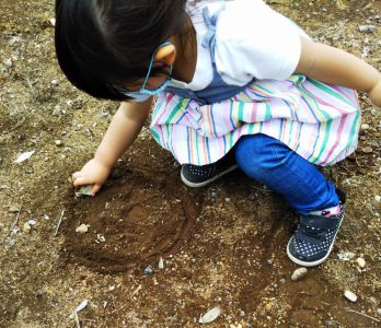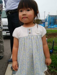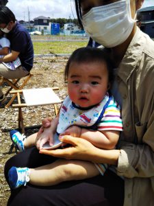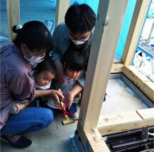 お子さんのHちゃんも、出来上がっていくお家に興味深々でするんるん (音符)