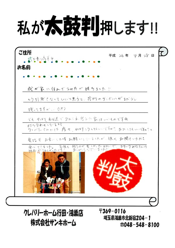 打ち合わせしている時、クレバリーさんには度々、やはりこうしてもいいですか?ああしてもいいですか?と電話やお会いした時、お願いしていましたが、快くお聞きいただき安心できました。