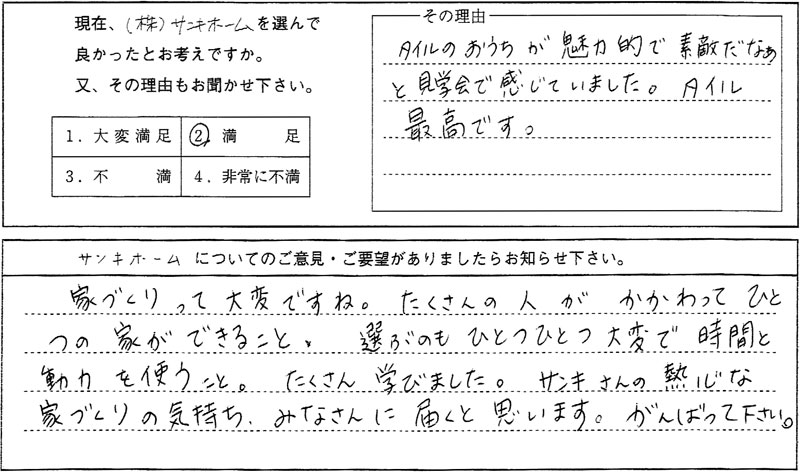 サンキさんの熱心な家づくりの気持ち、皆さんに届くと思います。頑張ってください。