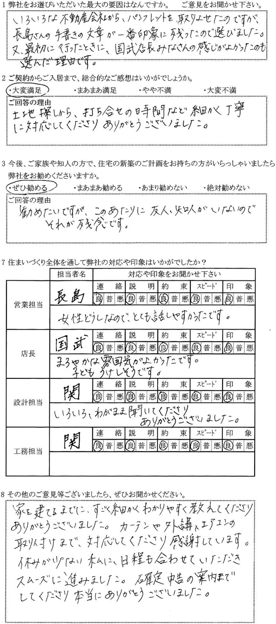 住まいづくり全体を通して弊社の対応や印象はいかがでしたか?