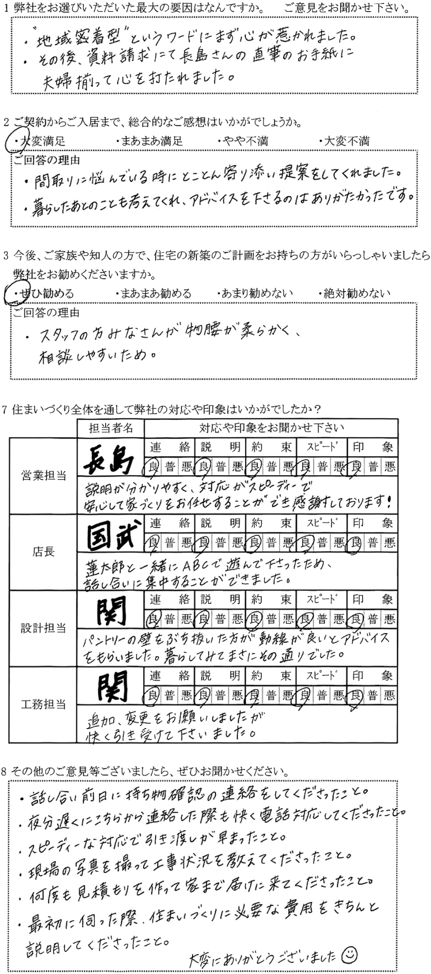 住まいづくり全体を通して弊社の対応や印象はいかがでしたか?